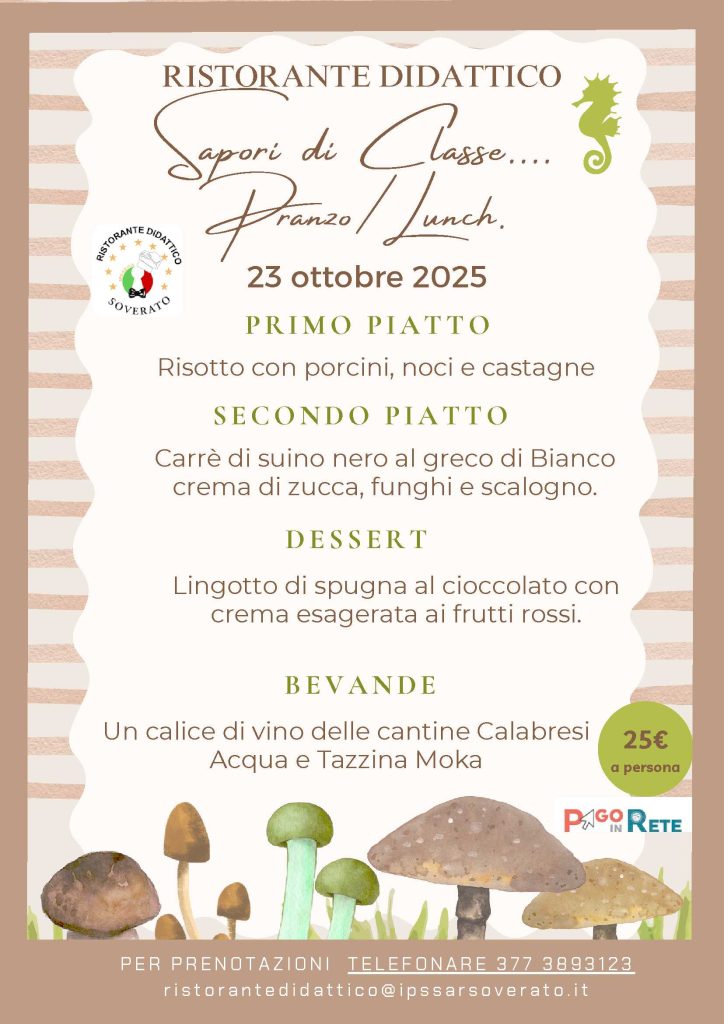 I NOSTRI PROSSIMI MENU’ DI OTTOBRE 2025